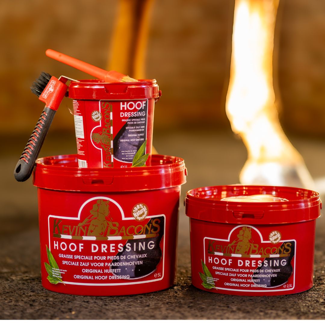 Maintaining the suppleness, elasticity, and balance of horses' hooves calls for the use of top-quality products, amongst other things. Our Hoof Dressing reflects this philosophy. We have been making Kevin Bacon's Hoof Dressing according to traditional methods for more than 32 years. It is a 100% natural product made from animal fat and fresh laurel leaves that are macerated to release their active substances.
